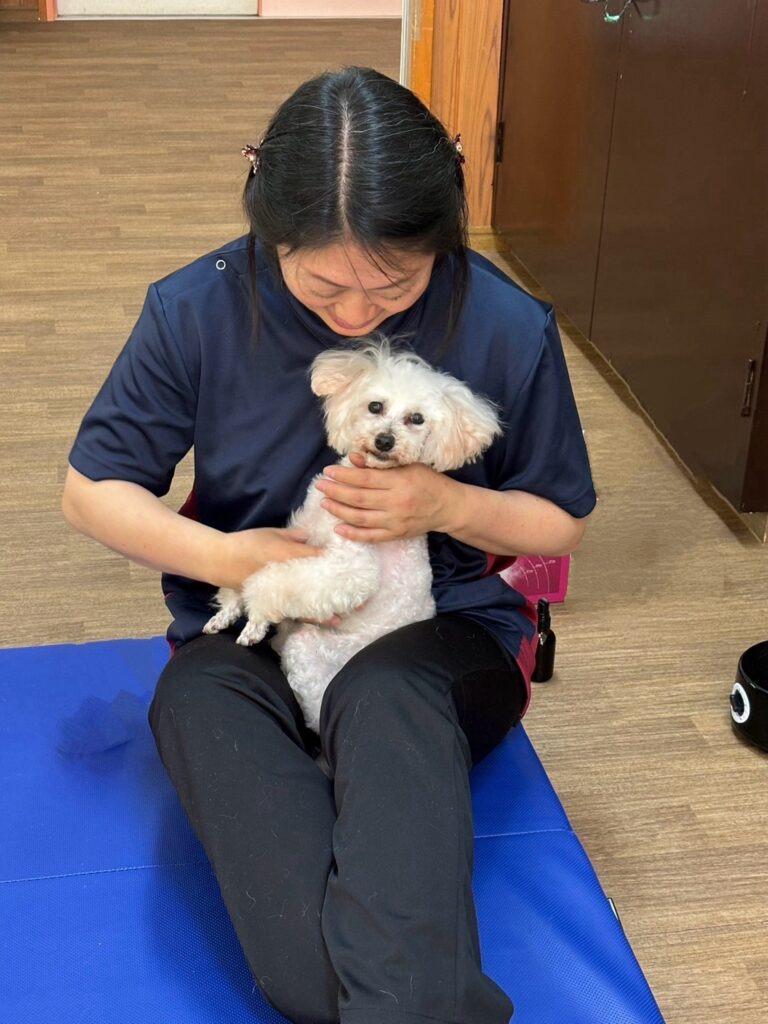 触ることがどうしても難しい子の場合、オーナーさんに簡単な施術をアドバイスしています。